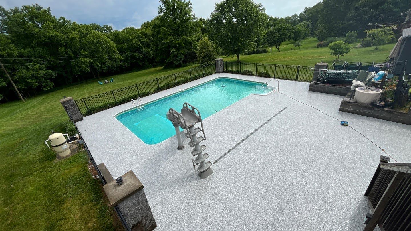 At KY Concrete Coatings, we specialize in providing high-quality polyurea coatings for pool decks and surrounding areas. Our polyurea solutions are designed to enhance the appearance, durability, and safety of your outdoor spaces, making them the perfect choice for pool areas in Kentucky.